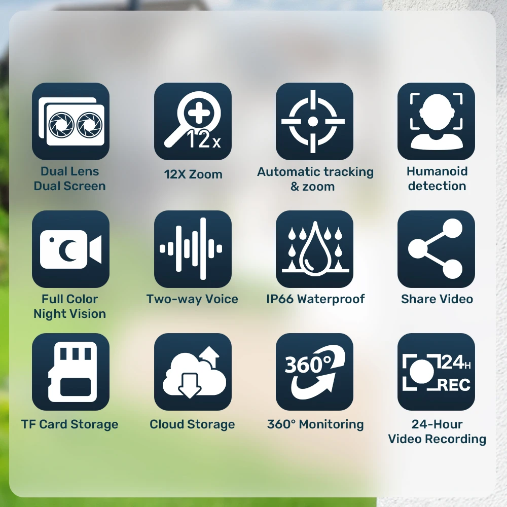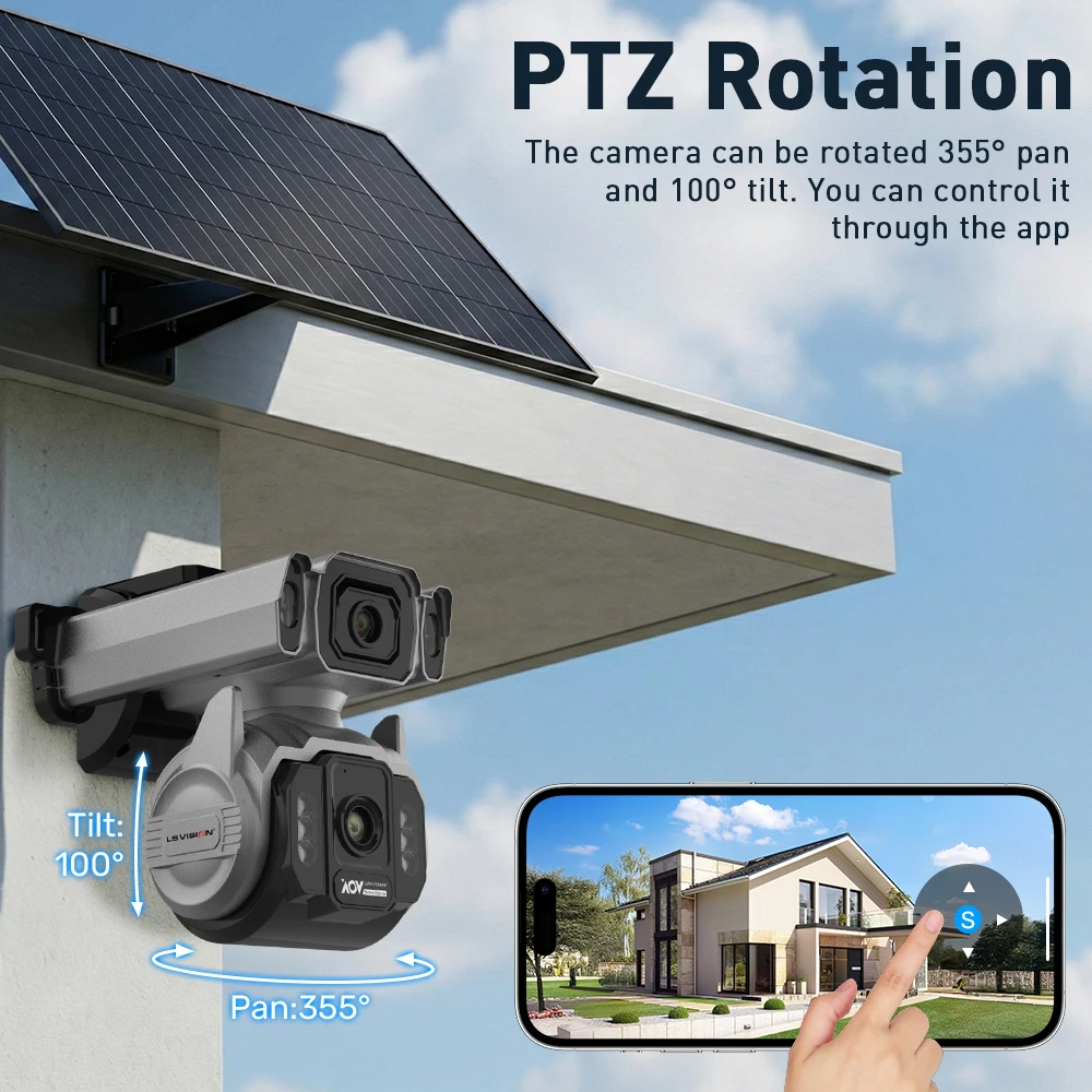 1. 10-мегапіксельна двооб'єктивна двоекранна 4G AOV-камера на сонячній енергії з 12-кратним зумом