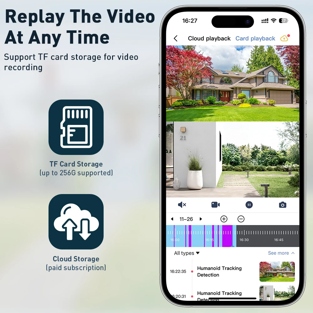 * Ця акумуляторна PTZ-камера безпеки має високочутливий гуманоїдний датчик руху для виявлення людей,