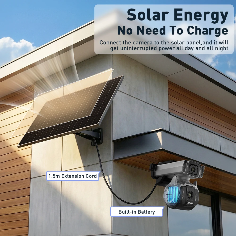 Дозволяє чіткіше бачити зображення та надсилати своєчасні й точні сповіщення. Чудовий вибір для захисту дому. Сонячна енергія, не потребує заряджання.