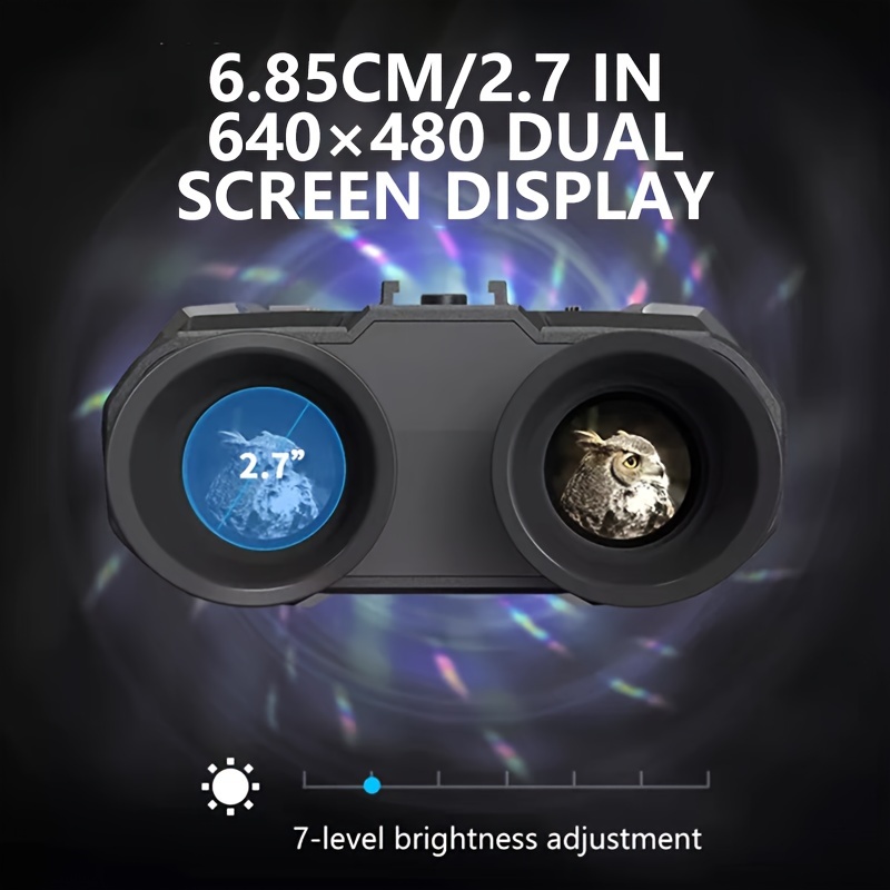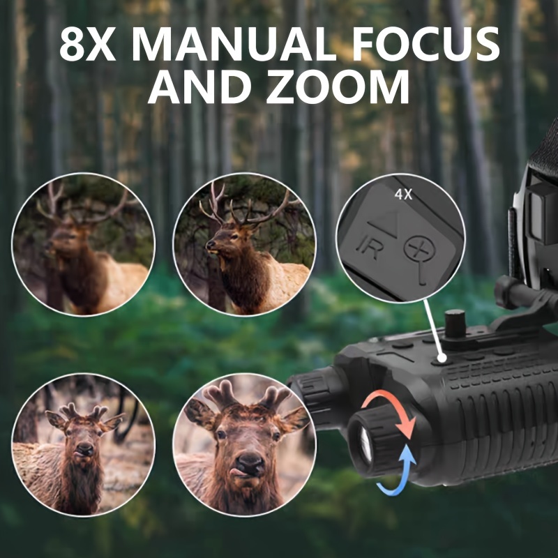 • Нічне бачення засноване на потужному інфрачервоному підсвічуванні до 400 метрів і світлочутливій камері, вбудованій в окуляри.