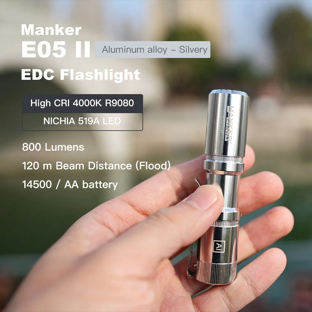Компактний ліхтарик Manker E05 II сріблястий алюміній