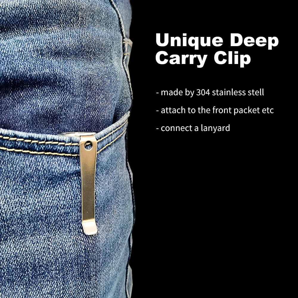 Ультракомпактний розмір, легка вага для ідеального щоденного носіння. Багатопаливна конструкція: літій-іонні батареї 14500, нікель-металгідридні батареї типу AA, лужні батареї типу AA. Надзвичайна продуктивність у своєму класі (освітлення 800 люмен / Постійний струм / Кут променя 105° / Дальність променя 120 метрів). Водонепроникність IP68, реальні випробування на глибині 2 метри під водою протягом 60 хвилин та стійкість до падінь з висоти 1,5 метра. Висока вартість, міцна конструкція та інженерія. Одним хвостовим перемикачем для керування однією рукою, глибока кліпса з нержавіючої сталі 304. Універсальне використання.