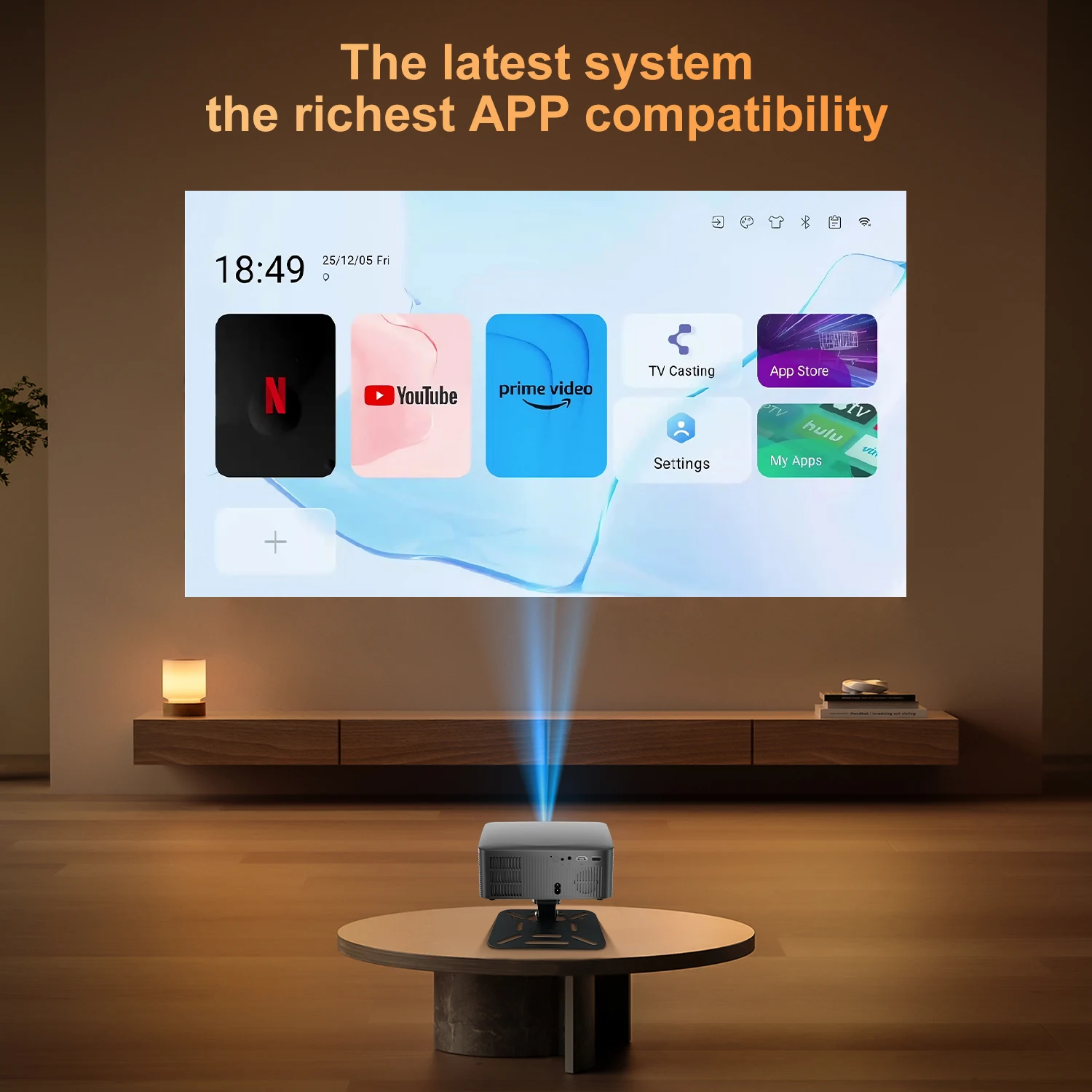 • Попередньо встановлені програми: Отримуйте доступ до популярних потокових платформ, таких як Netflix, YouTube, Prime Video, Spotify та інших, безпосередньо з проектора.