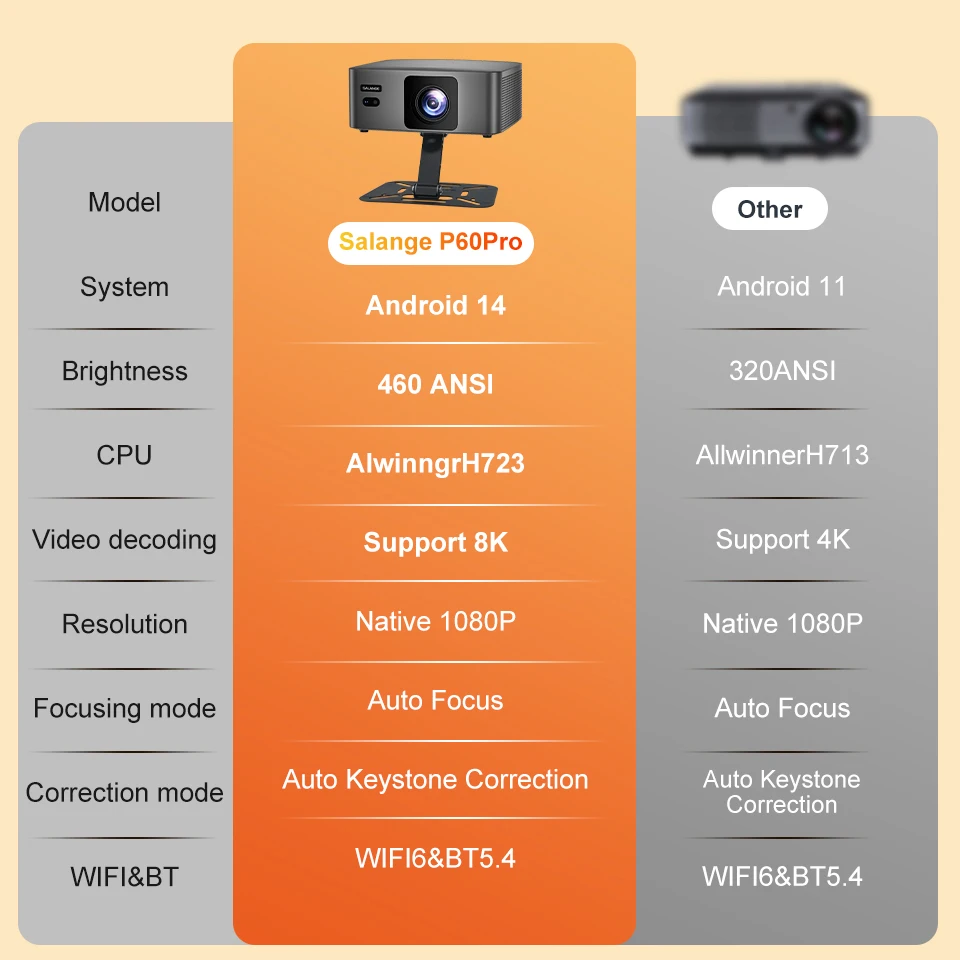 Розумний проектор SALANGE 1080P Native Smart поєднує в собі передові технології, зручні функції та виняткову цінність, що робить його ідеальним вибором для тих, хто хоче оновити свою домашню розважальну систему. Незалежно від того, чи ви кіноман, геймер чи професіонал, якому потрібен надійний інструмент для презентацій, цей проектор забезпечить необхідну продуктивність та універсальність.