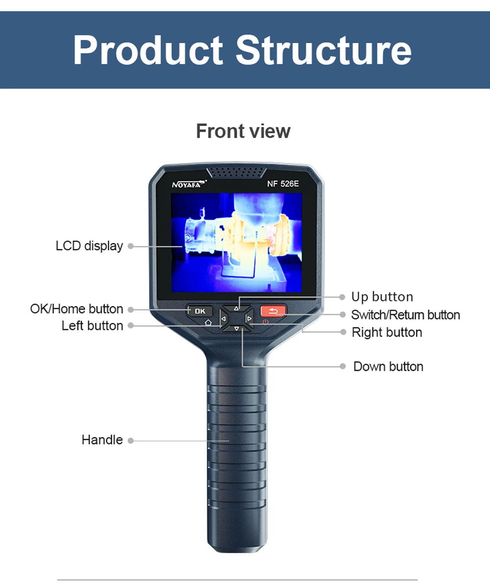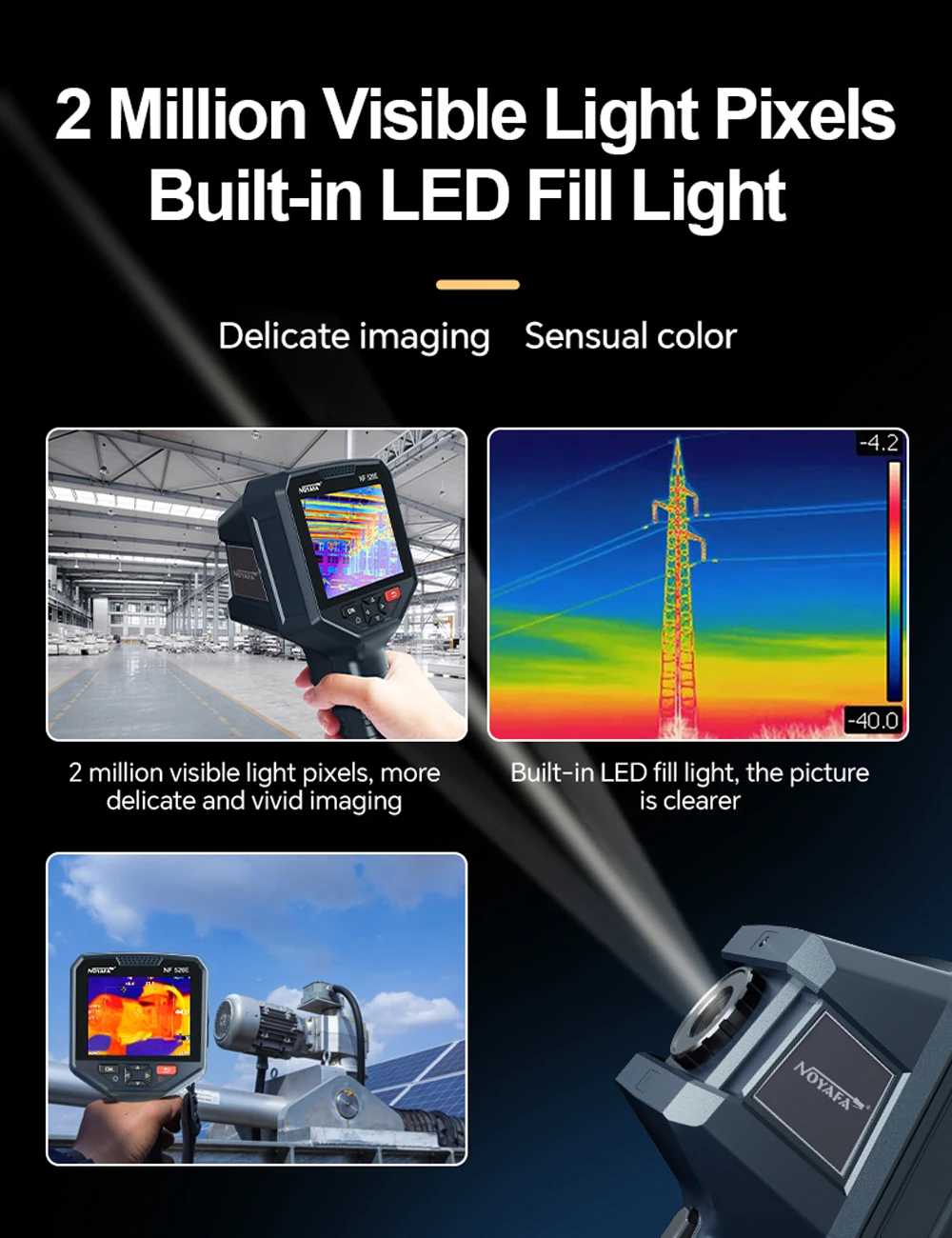NOYAFA NF526E– професійний тепловізор для виконання енергоаудиту, дослідження енергонавантажених компонентів та систем у сфері електротехніки, енергорозподілу та механіки.